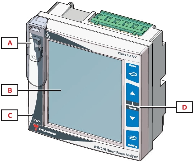 A | Optical port and plastic support for OptoProg (CARLO GAVAZZI) connection |